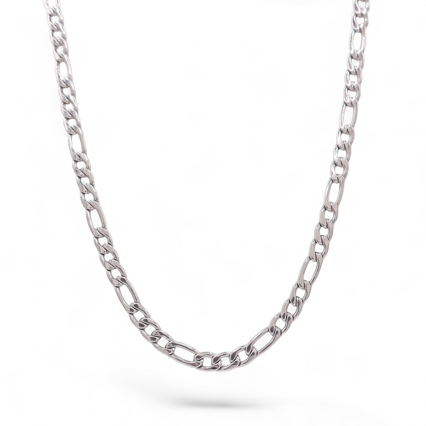 This 7mm Figaro Chain is crafted from highly durable stainless steel and finished with white gold for a timeless, classic look. Enjoy life without worrying about tarnishing, as it is resistant to oxidation and discoloration. Perfect for accessorizing any look.